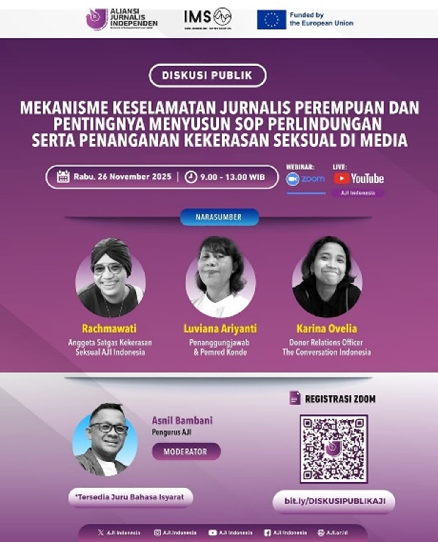 Platform: Webinar melalui Zoom dan siaran langsung di YouTube AJI Indonesia.